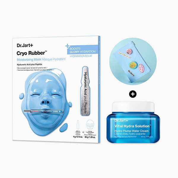 Instantly cools and deeply hydrates for plump, glowing skin. A cooling hydration duo packed with Hyaluronic Acid for dry, overheated skin. Pairing our water gel cream with a cryo rubber mask, this set delivers a refreshing watery glow while plumping skin with deep hydration.